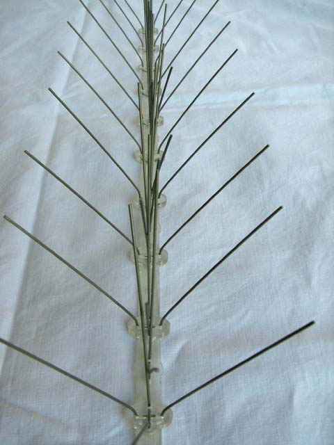 Inox špice, pritrjene na polikarbonatno (plastično) UV odporno podlago, razporejene v obliki črke W, debelina špice 1,3 mm, višina špice 105 mm.